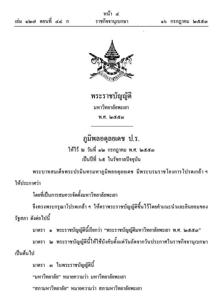 พระราชบัญญัติมหาวิทยาลัยพะเยา